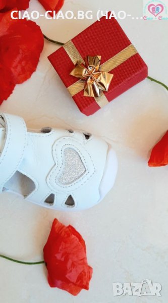 Бебешки Сандали за момиче от Естествена кожа, с брокатено сърце BUBBLE KIDS