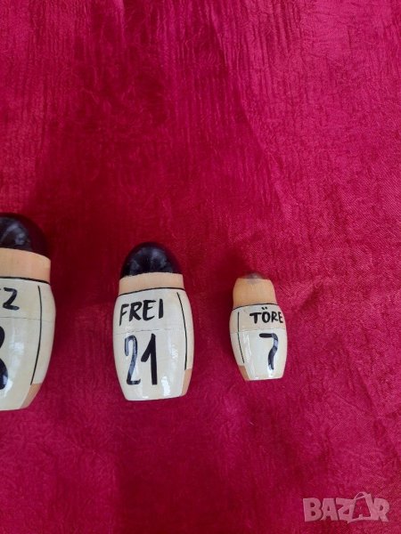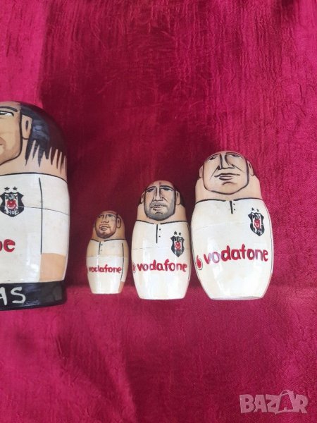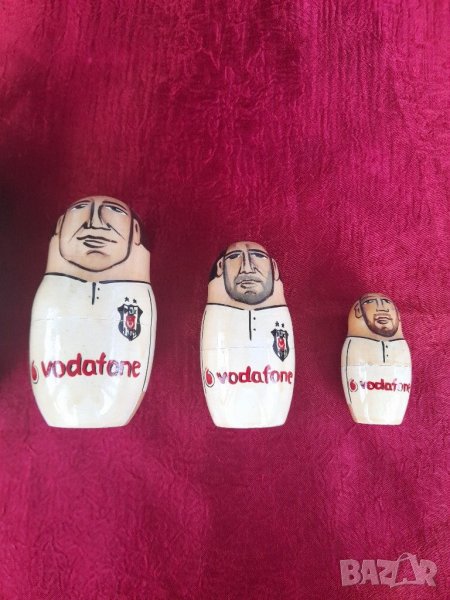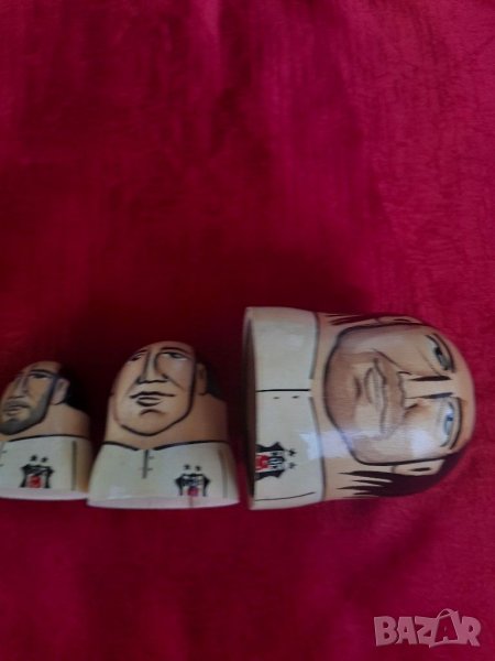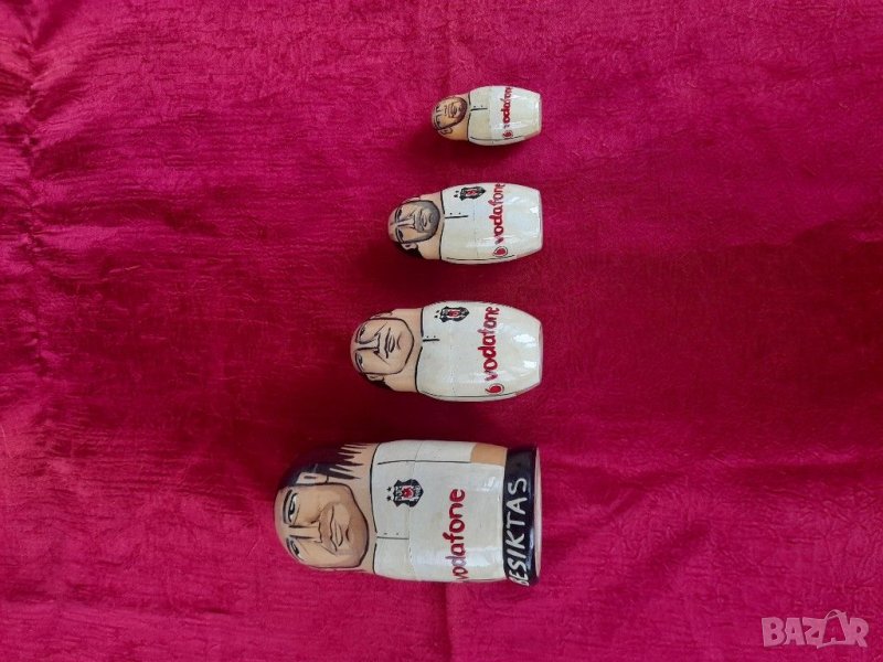 Стари дървени фигурки тип матрьошки от турски произход, футболисти,Състояние видно на снимките изключително запазени, няма пукнати, счупени и обелени. За колекционери.