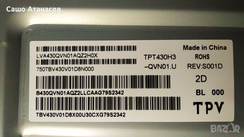 Панел: TPT430H3-QVN01.U REV:S001D - 140лв.