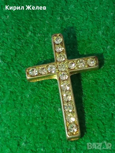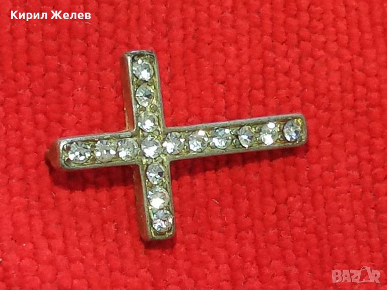 СТАРО ПОСРЕБРЕНО КРЪСТЧЕ с ФАСЕТИРАНИ ЮВЕЛИРНО КРИСТАЛИ АРТ МЕДАЛЬОН 21935