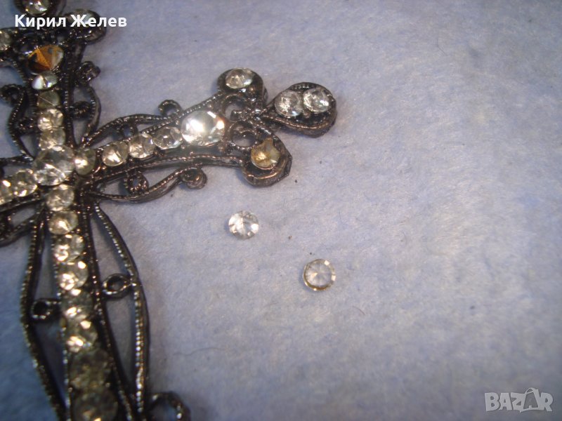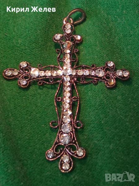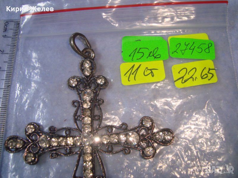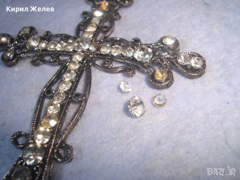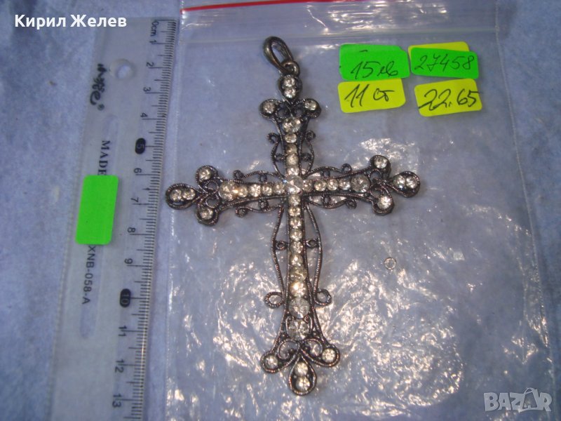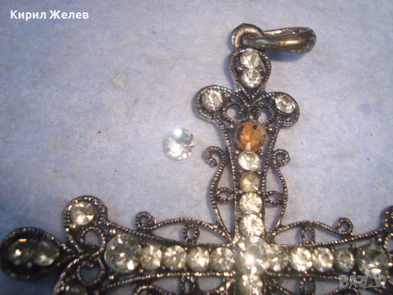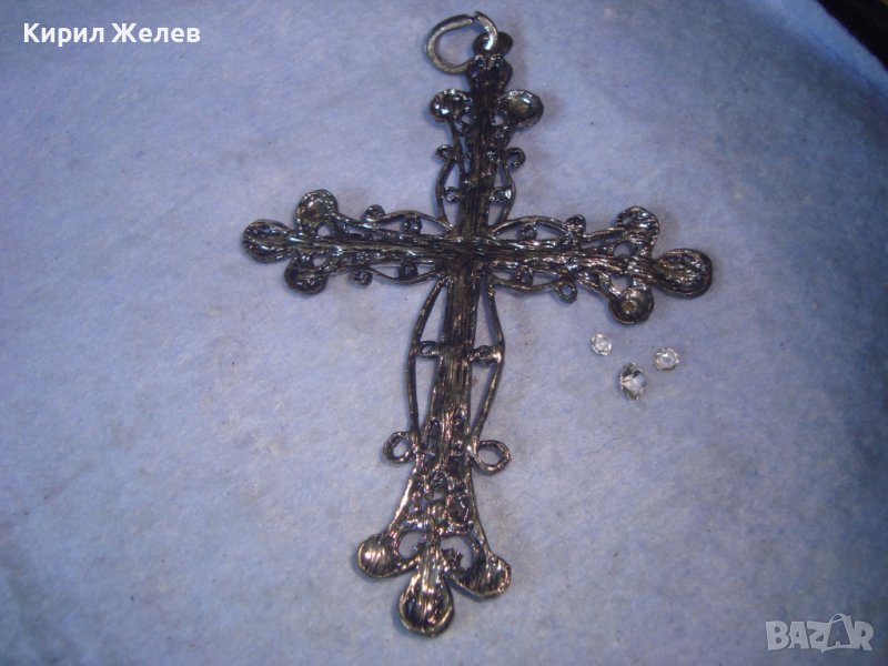 СТАРО ГОРЯМО НАГРЪДНО СРЕБРИСТО АЖУРНО АРТ КРЪСТЧЕ - МЕДАЛЬОН с КРИСТАЛЧЕТА 27458