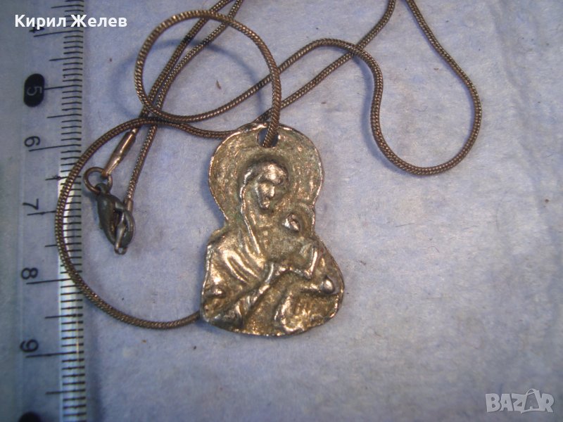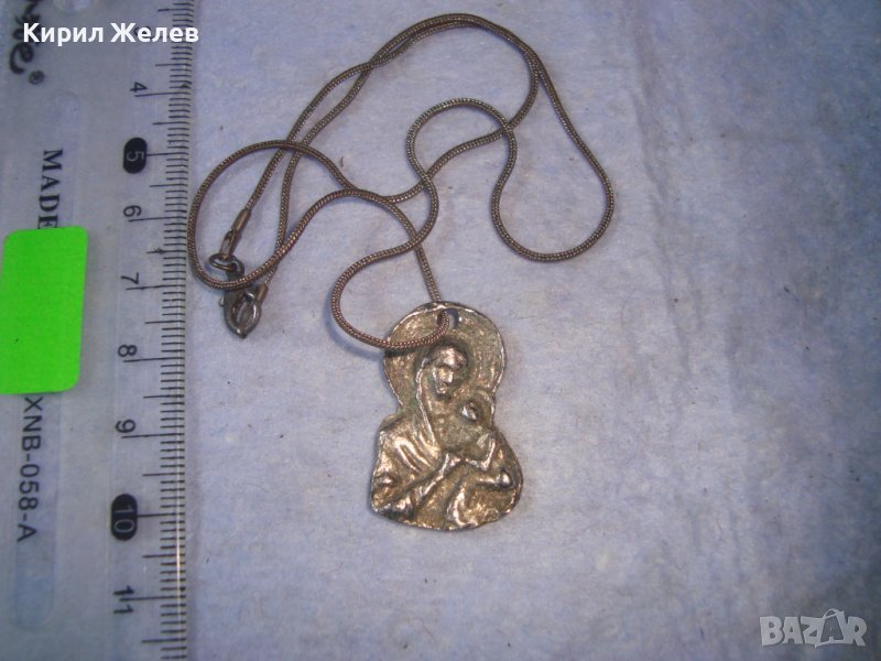 СТАРА ПОСРЕБРЕНА ПРАВОСЛАВНА ИКОНА НАГРЪДНА ХУДОЖЕСТВЕНА ИЗРАБОТКА с ВЕРИЖКА СЪЩО ПОСРЕБРЕНА 22694