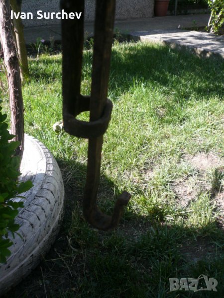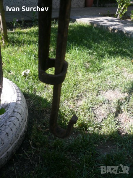 оригинална зака4алка за бакур автенти4на масивна в сгунато положение е кум 130 см а в разпунато нат 2метра изработена е от ковано йелиазо става и за голиам казан над 100 кг