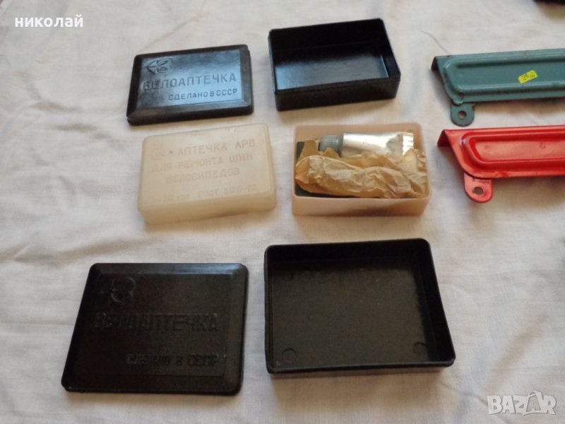 Велоаптечки СССР Черни празни Цена 28 лв/броя, бяла комплектна Цена 38 лвПредни емблеми "В" Цена 58 лв, Емблема RALEIGH Цена 88 лв, емблема ВМЗ Цена 188 лв, Емблема Diamant Цена 88 лв.