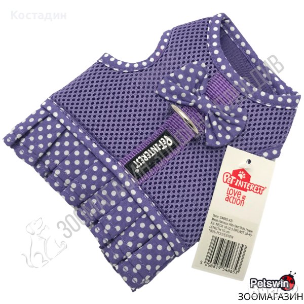 Нагръдник за Куче - XS, S, M, L, XL - Лилав/Бял цвят - Pet Interest