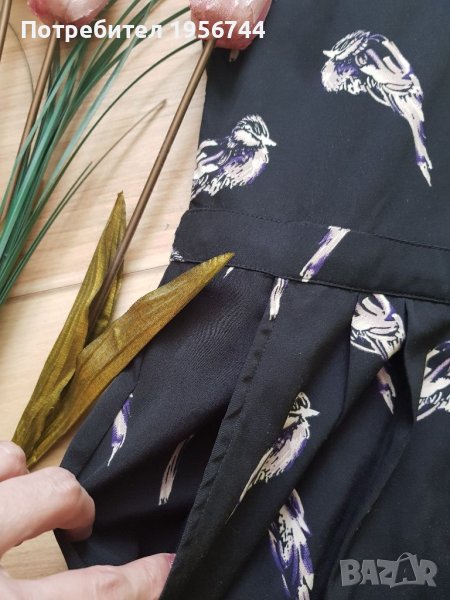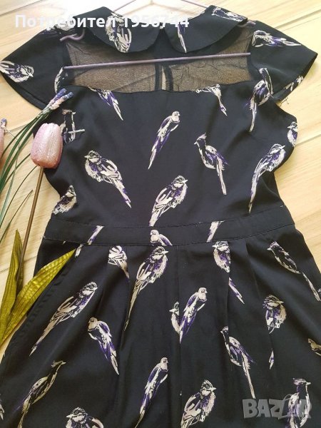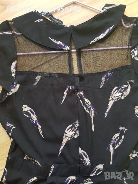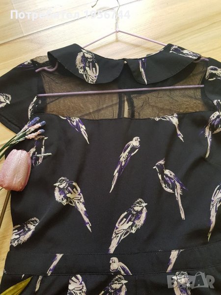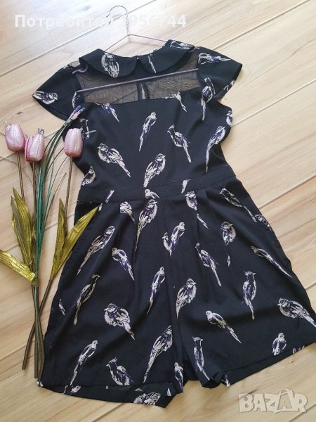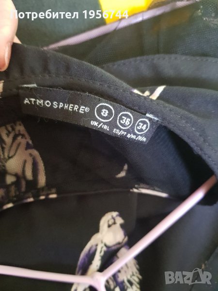 Стилен, стои много елегантно, с интересни мотиви летен гащеризон на марката Atmosphere, размер 36 /S/. Изключително лека, мека и приятна материя. В горната част е с тюл и якичка. На гърба се закопчава с цип. Има странични джобове, носен броени пъти, без забележка.