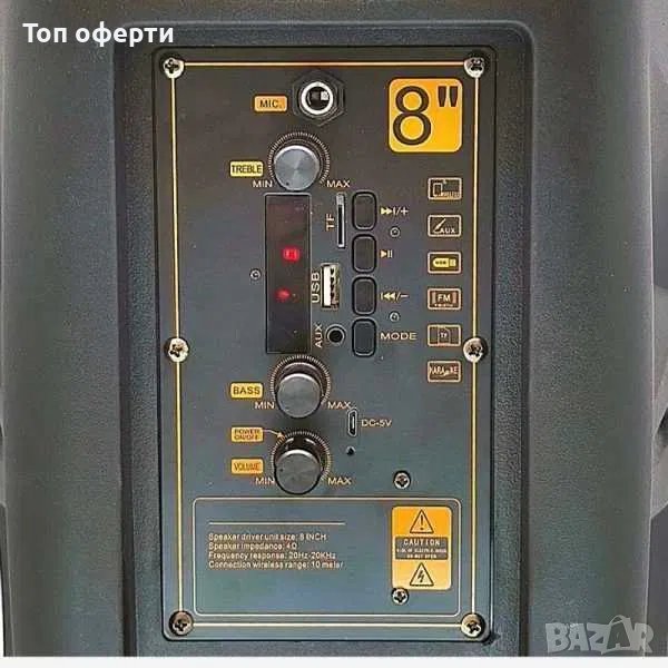 - Мощност: 8 инчов басов говорител