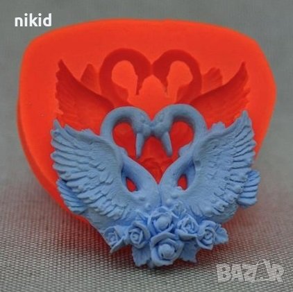 2 разперени Лебеда Лебед Лебеди с рози силиконов молд форма калъп фондан шоколад гипс → Обява 36963432