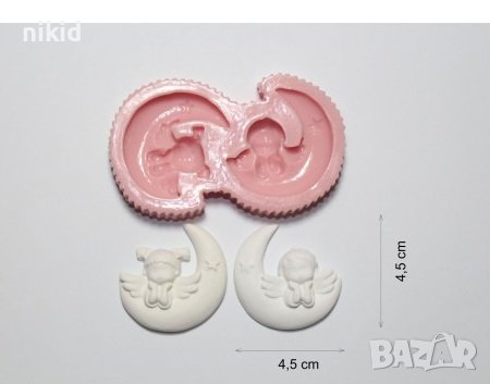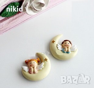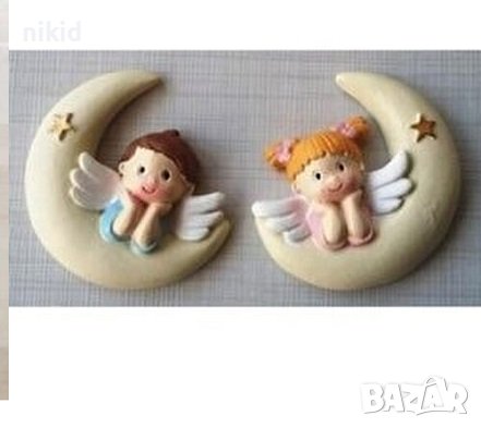 2 деца ангелчета на луна силиконов молд пано форма калъп фондан гипс → Обява 36964817