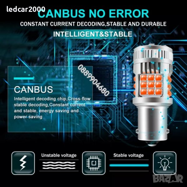 Лед крушки за мигачи и дневни светлини DRL LED T20 1156/1157 (12 - 24 V.)