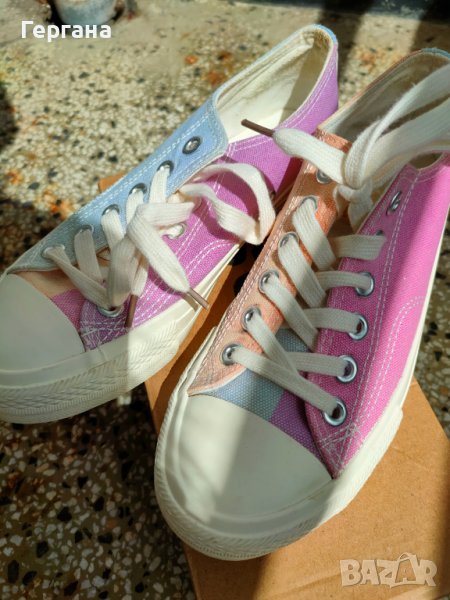 Бели гуменки, който на слънце стават цветни. Обувани са веднъж