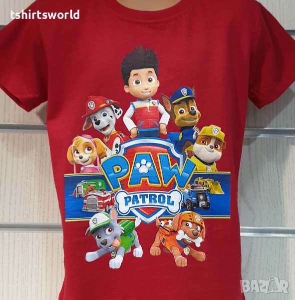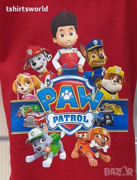 Нова детска тениска с дигитален печат PAW Patrol (Пес патрул) в червен цвят