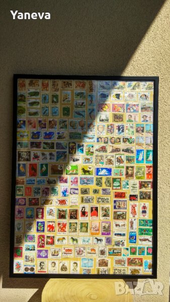 Филателия,стари български и чуждестранни марки в рамка.Размер 72/52.Цена 70 лв. Артистична декорация за магазин или дом.