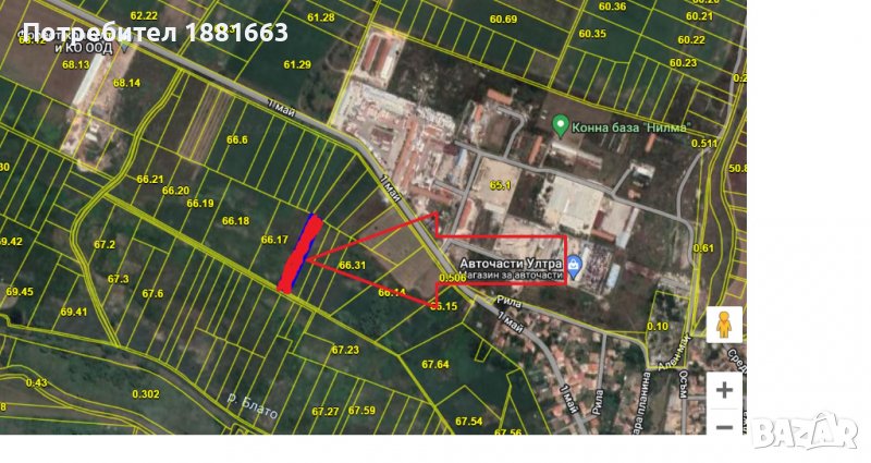 Парцел с големина 3674 кв.м и статут на Земеделска зона с разрешено