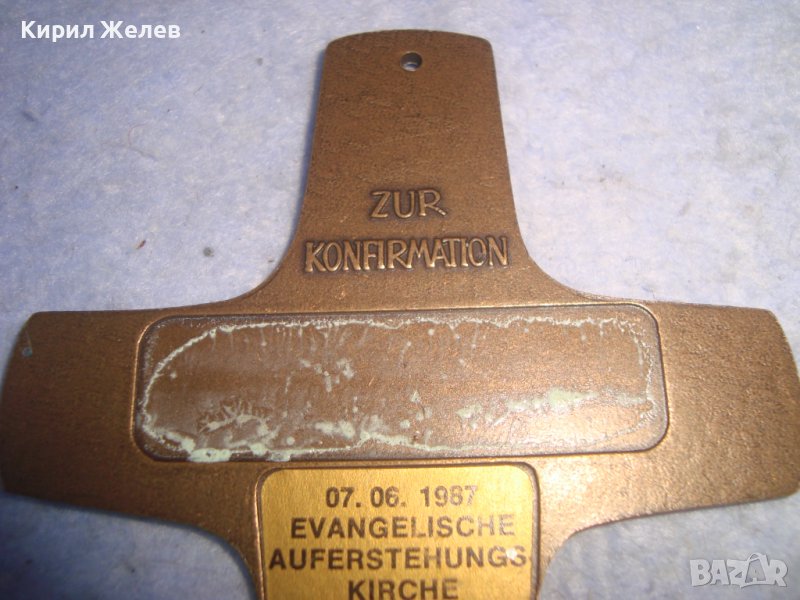 СТАР ГОЛЯМ РЕЛЕФЕН НЕМСКИ БРОНЗОВ КРЪСТ ПОДАРЯВАН при КОНФИРМАЦИЯ в КАТОЛИЧЕСКАТА ЦЪРКВА 259756