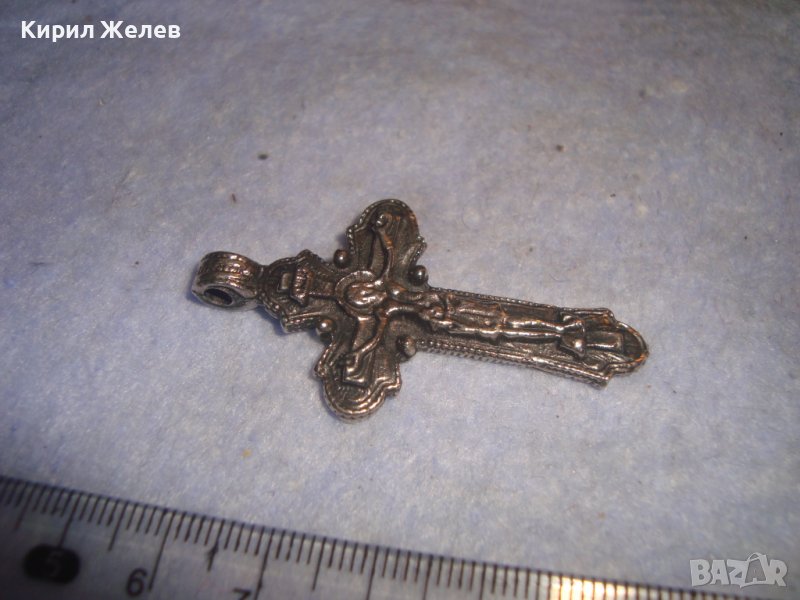 КРАСИВО МЕСИНГОВО РАЗПЯТИЕ НАГРЪДНО КРЪСТЧЕ ПОСРЕБРЕНО 12246