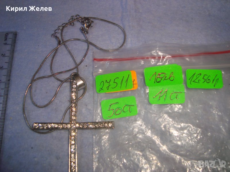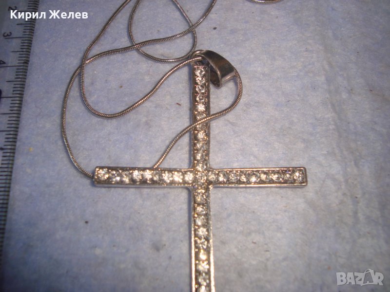 СРЕБРИСТ ГОЛЯМ КРЪСТ - КОЛИЕ с ФАСЕТИРАНИ БЛЕСТЯЩИ КРИСТАЛЧЕТА и ФИНА ВЕРИЖКА 17511