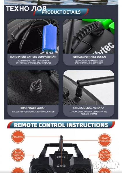 2. Двойни мотори, огромно натоварване Два отделни резервоара за примамки, които могат да се контролират отделно. Резервоар за примамки с голям капацитет, тегло 1,5 кг