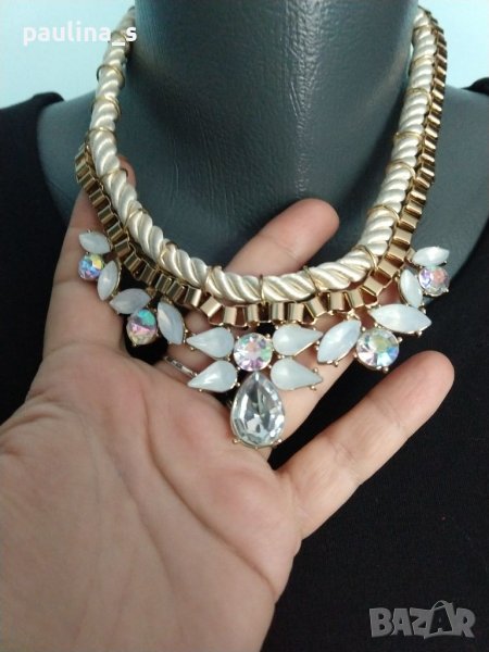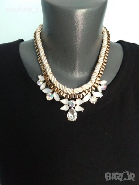 1️⃣. Колие със бяла сатенена връв и бели имитационни камъни - цена 29,99лв / 15 евро.