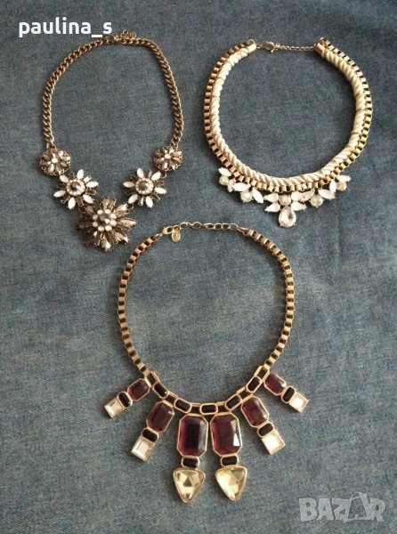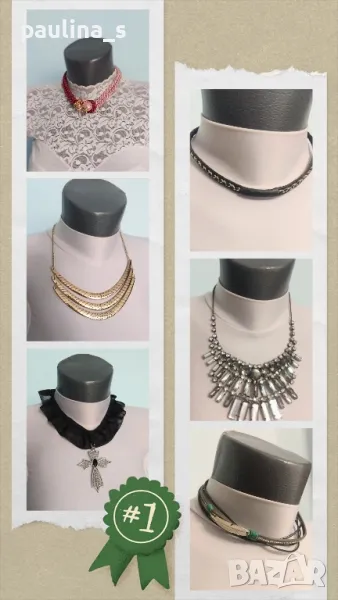 Поради новите правила за заплащане на обновяванията на обявите, моля разгледайте и последните страници на профила ми, обявите са активни и евтини. Много красиви колиета тип чокър с камъни, всяко едно е с различен аутлук, дизайн и цена. Нови и като нови.