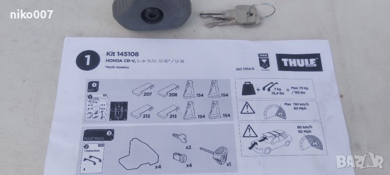 Топ оферта на половин цена-Чисто нови -Оригинални греди на Thule kit 145108 за Хонда CR-V-Honda SR-V модел 2012-2018г. без рейлинг на тавана.Захватите и Thule кита са чисто нови а гредите ползвани с нормални следи от употреба.Цената е 240лв с гредите.HONDA CR-V, 5-dr SUV, 12-16* / 12-18