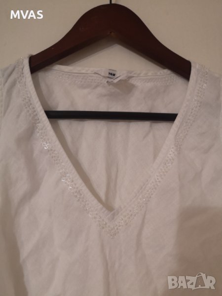 Нов бял дамски потник на H&M. 100% лен. Проветрив идеален за лятото. Дискретни мъниста около деколтето