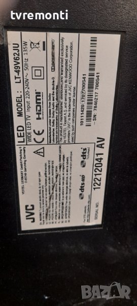 POWER BOARD, 17IPS72, for 49 inc DISPLAY for, JVC LT-49V62JU Борда е гарантирано работещ Демонтиран от телевизор JVC модел LT-49V62JU със счупен дисплей VES490QNDS-2D-N11 тествана от нашия техник