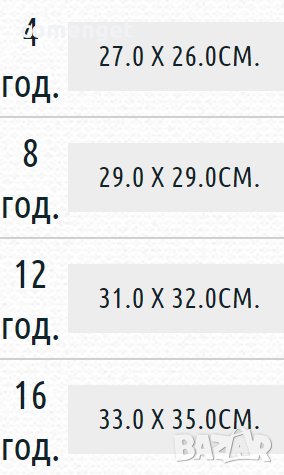 3-4 години (ръст до 104 см.) 4-5 години (ръст до 110 см.) Ръст до 116 см Ръст до 122 см Ръст до 128 см Ръст до 134 см Ръст до 140 см Ръст до 146 см Ръст до 152 см Ръст до 158 см Ръст до 164 см