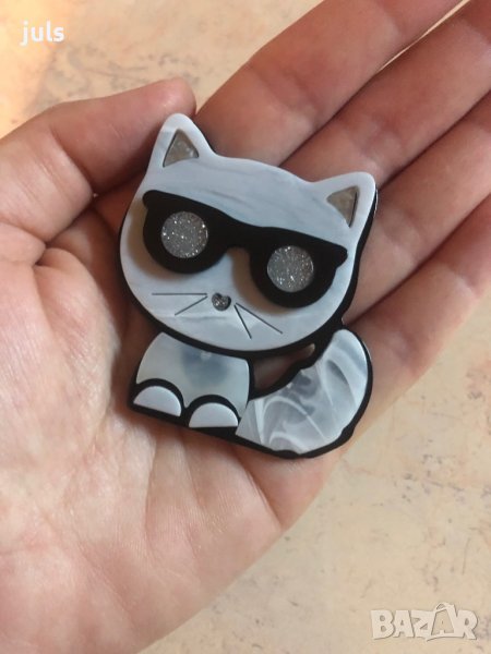 Брошка/ значка с котката на Карл Лагерфелд.