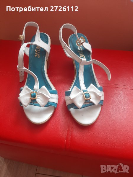 Предлагам кожени сандали сините с бялото са почти като нови само 2 пъти са използвани