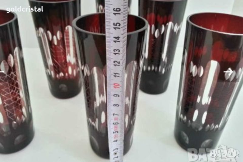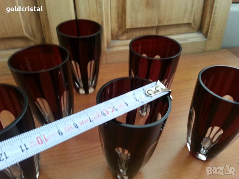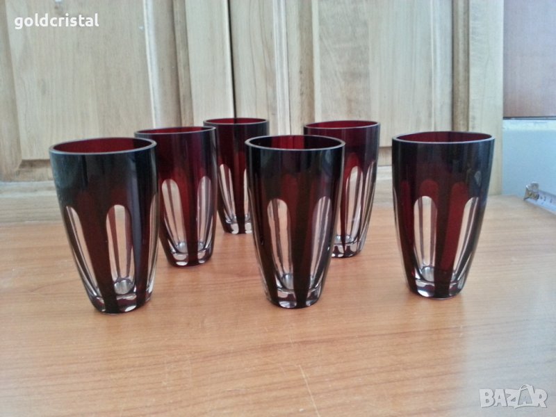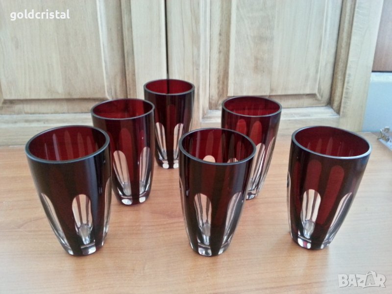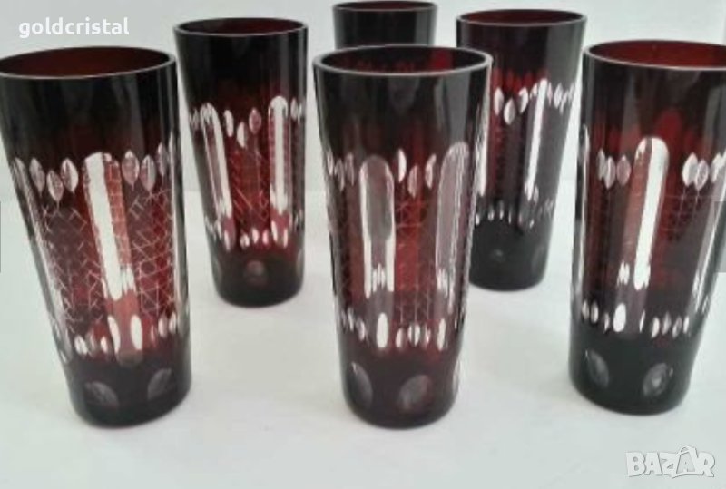 Кристални чаши френски кристал цветен червен кристал за ракия или уиски 6бр-490лв за вода 6 бр-590лв сервиз комплект сет лот ретро арт декор винтидж колекция старинни антикварни предмети обзавеждане за дома и семейството подходящи за подарък за ценители и колекционери