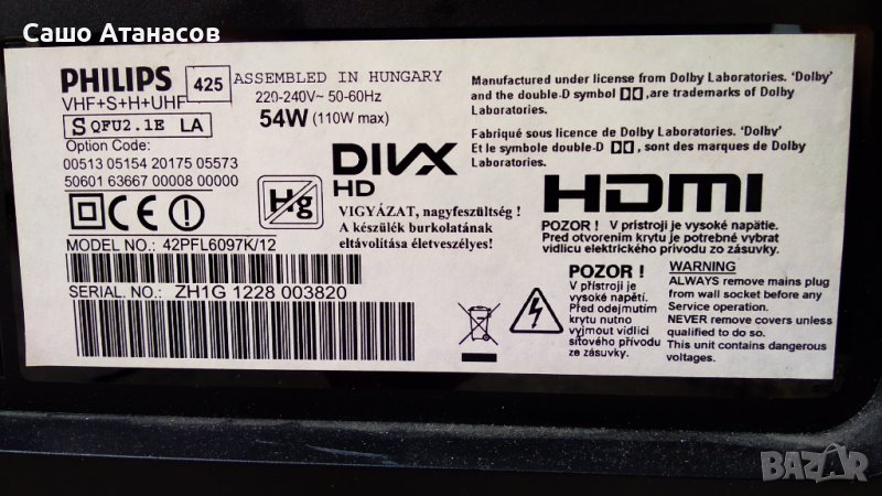 PHILIPS 42PFL6097K/12 със счупена матрица ,DPS-119CP A ,3104 313 65664 ,6870C-0402C ,8WUSN19P.0B1G