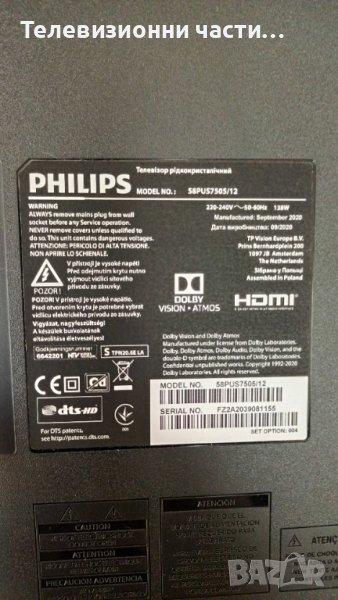 Philips 58PUS7505/12 със счупен екран-715GA052-P02-008-003M/715GA564-M0E-B00-005Y/TPT580F2-PV5D.Q → Обява 36993620