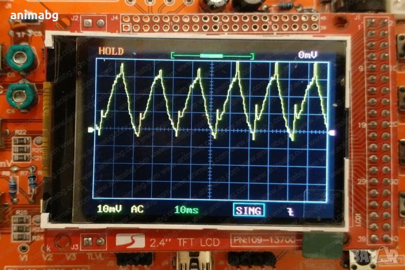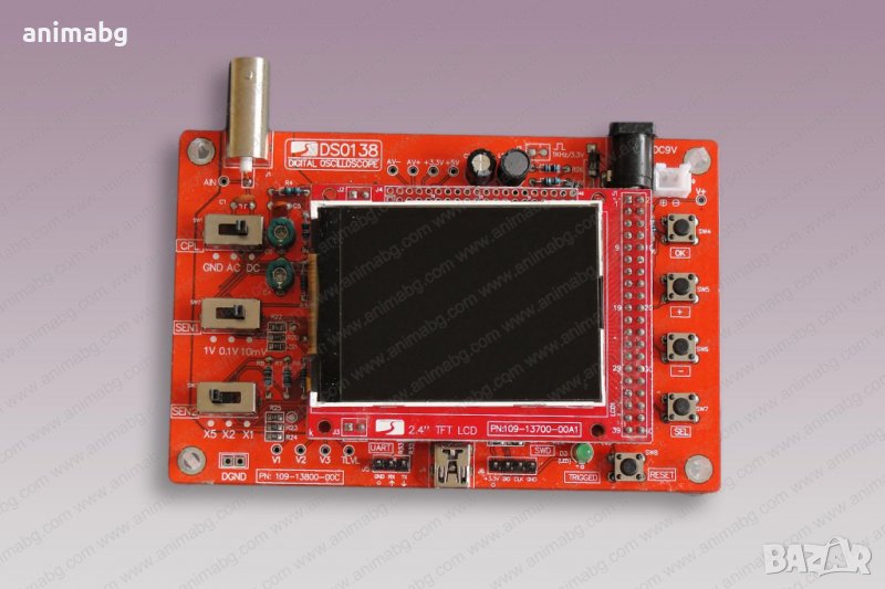 Малък и практичен осцилоскоп на достъпна цена. Измерва до 200kHz с цветен LCD дисплей 2.4” (262K цвята) Осцилоскопът е прона с микропроцесор Cortex-M3 ARM (STM32F103C8) от ST. Благодарение малката му консумация (120 mA) може да се свържи с батерия 9V.