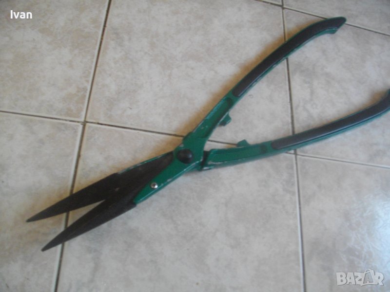 ОПИСАНИЕ на най-дългата зелена ножица. НЕ Е НАЛИЧНА. Почти нова, предполагам немско производство. Изцяло от алуминий, лека и удобна за работа. не се усеща в ръцете. Цялостна дължина 610 мм, дължина остриета - 200 мм. Тегло - около 0,5 кг. Остриетата са изключително остри и добре фабрично заточени. Ножицата е почти нова, много малко ползвана. Разтваряне на остриетата - до 290 мм. Сменяеми са, захват - болт.