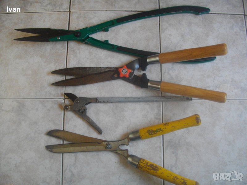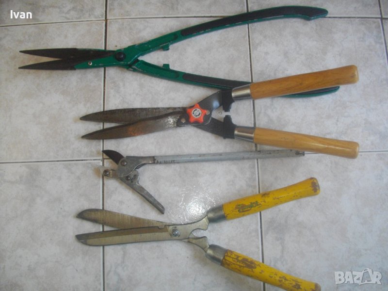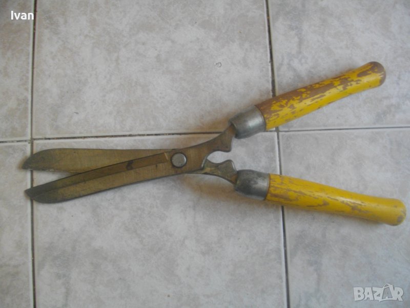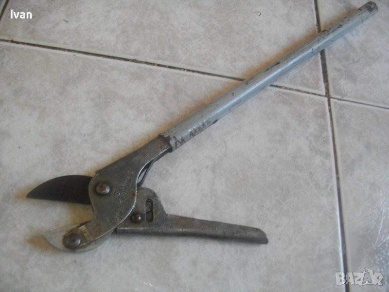 Ножицата е от старият тип ножици с дебела стомана, която не се огъва при рязане на дебели клони. Дебелина навсякъде на стоманата по ножицата - 5 мм. Дължина ножица - 470 мм, дължина остиета - 180 мм, масивни ,дебели, с жлеб-ограничител на навлизане на клончето ,което се реже. Ножицата е нова, стояла е неизползвана и неупотребявана. Поолющена боя на дръжките. масивни стоманени пръстени на дръжките. Цена на ножицата - 139 лв. Твърда цена.