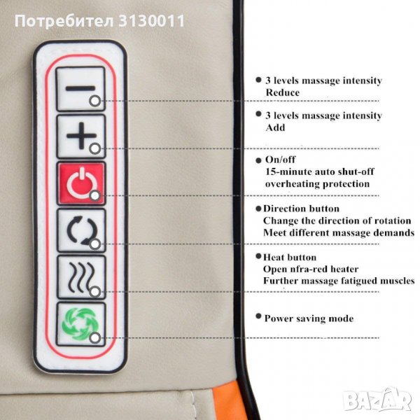 Изключително лесен за използване - просто го поставете на раменете си включето го и поставете ръцете си в предназначените за тях накрайници.