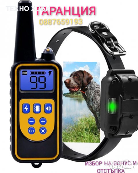 Електронен Нашийник, Телетакт за дресура на куче, Водоустойчив, Електронна каишка с обхват до 800м.