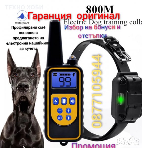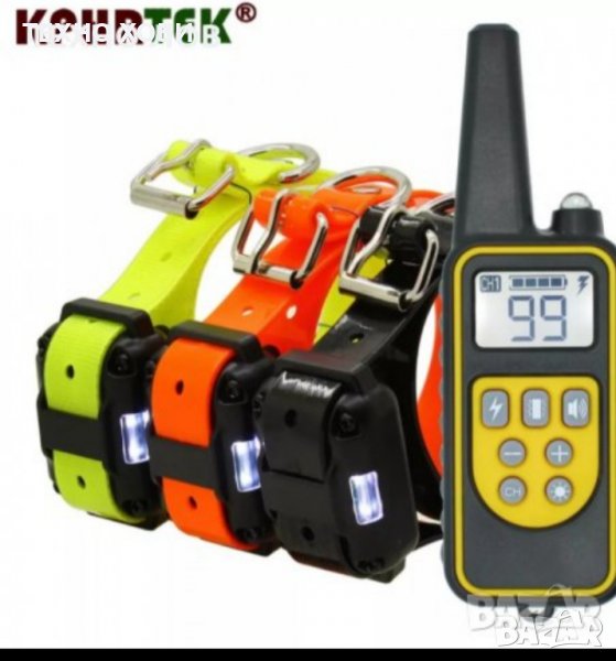 ЕЛЕКТРОНЕН НАШИЙНИК КАИШКА С ТОК ЗА ОБУЧЕНИЕ НА КУЧЕ,ДО 800 МЕТРА ОБХВАТ,ВОДОУСТОЙЧИВ.