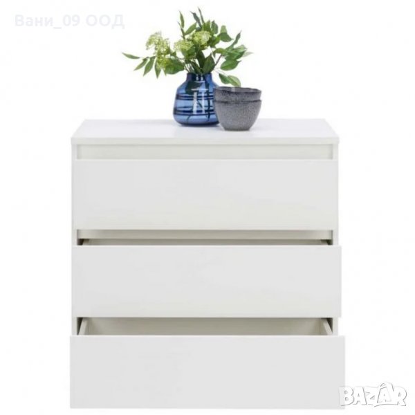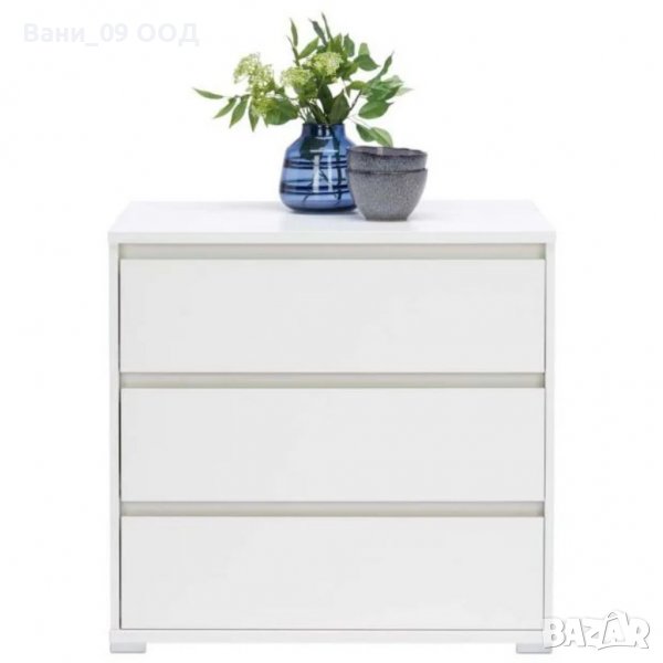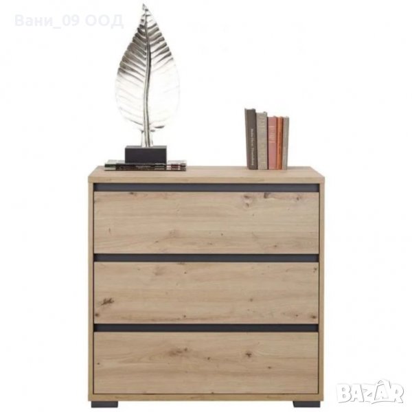 Стилен и функционален комод в декор Дъб Артисан или бяло, с 3 чекмеджета. Конструкция за отваряне без дръжки.
