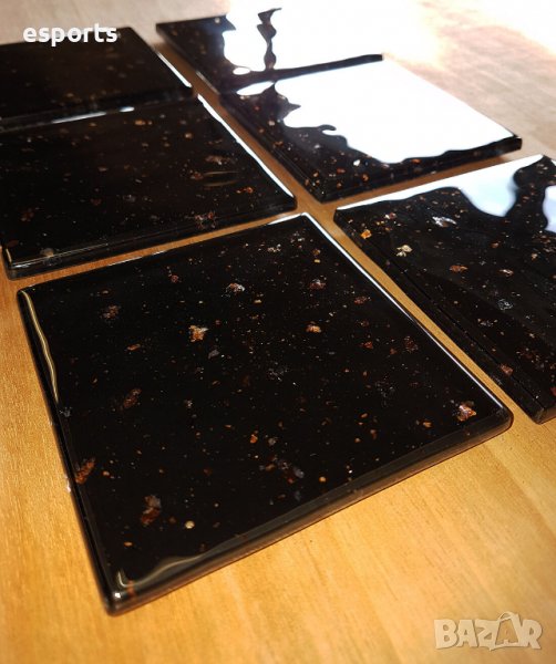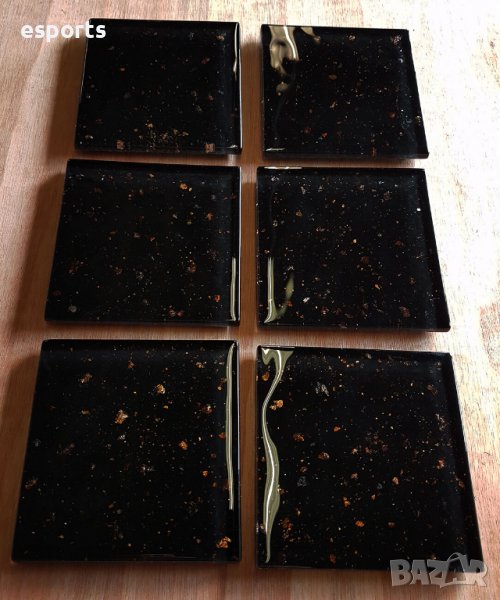 Ключови думи: антрацит блек черен черно antracite random bronze Rhinestone Sparkle Mirrored Glass Drinks Wine Coffee Mug Cup Table Mats Coasters коустър coaster сребристо сребрист сребристи подложка коустърче Black with multi-sized Bronze Mica Flakes sparkles Textured fused glass slate texture reverse.