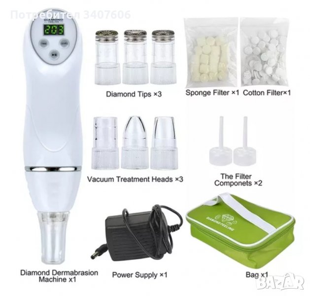 Размер на опаковката - 24 х18 х9 см.Принцип на диамантеното дермабразио