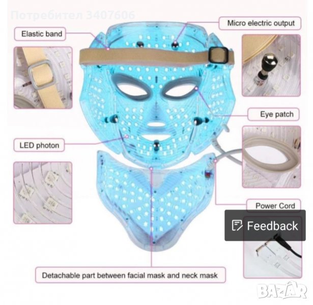 Маската за фотодинамична терапия използва принципа на фотонно облъчване, който е напълно безопасен. Увеличава активността на клетките, забавя стареенето на кожата, стимулира секрецията на колаген в клетките, подобрява еластичността на кожата. Подобрява циркулацията на кръв, намаля бръчките цялостно възстановява кожата на лицето. Уредът е базиран на оригинална технология, която използва седем цвята на светлината – червен, син, зелен, жълт, лилав, синьо-зелен, бял. Всеки от цветовете има различен ефект върху кожата и отговаря за лечение на различен проблем.