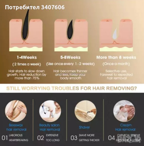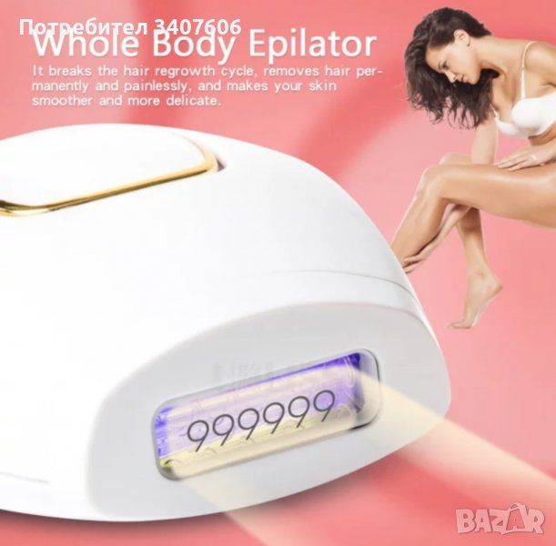 Фотоепилатор IPL 999 000 импулса- трайно обезкосмяване, лесно и безболезнено.Видими и трайни резултати след 8 седмици !