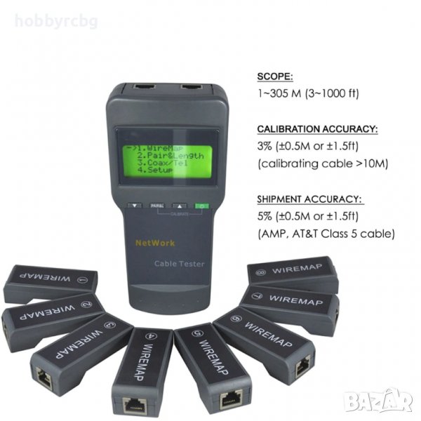 Тестер за мрежови, LAN, коаксиални кабели с 8 идентификатора