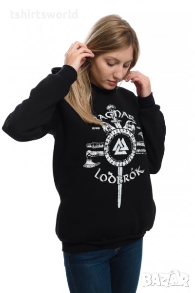 Нов дамски суичър с трансферен печат Рагнар Лодброк, сериала Викинги