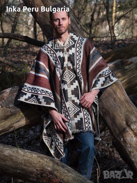 Автентичнo еквадорско унисекс пончо Мапуче, 100% вълна, кафяво → Обява 37011498
