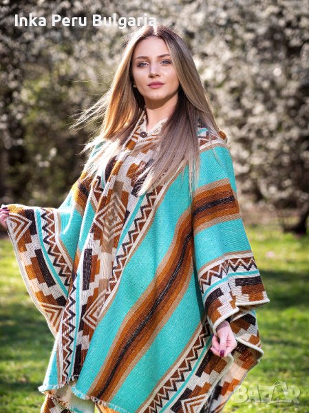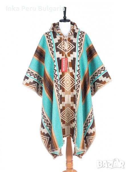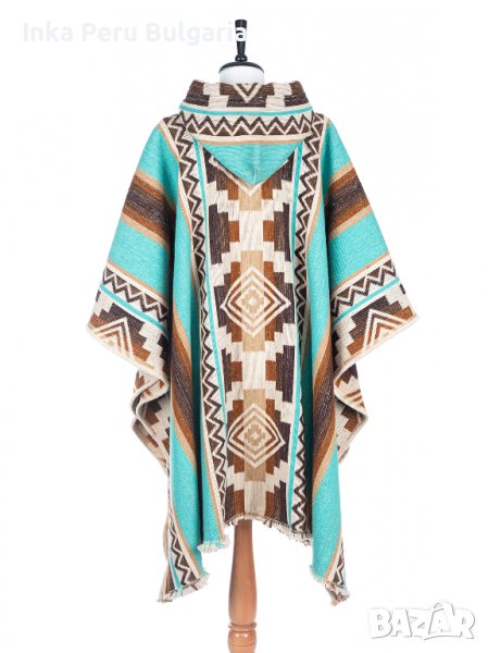 Автентичнo еквадорско унисекс пончо Мапуче, 100% вълна, тюркоазено синьо → Обява 37011588