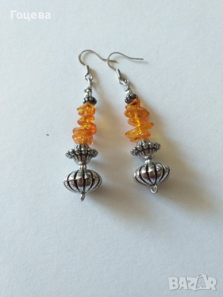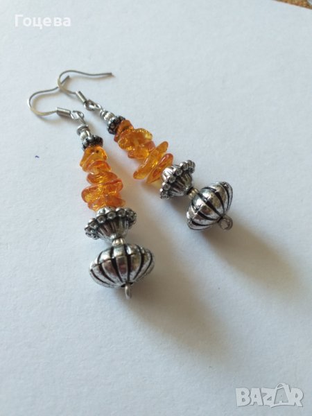 Прелестни обици с Балтийски Кехлибар цвят коняк и красиви орнаменти в цвят Сребро стил Антик