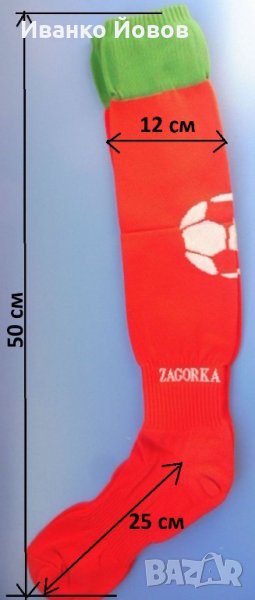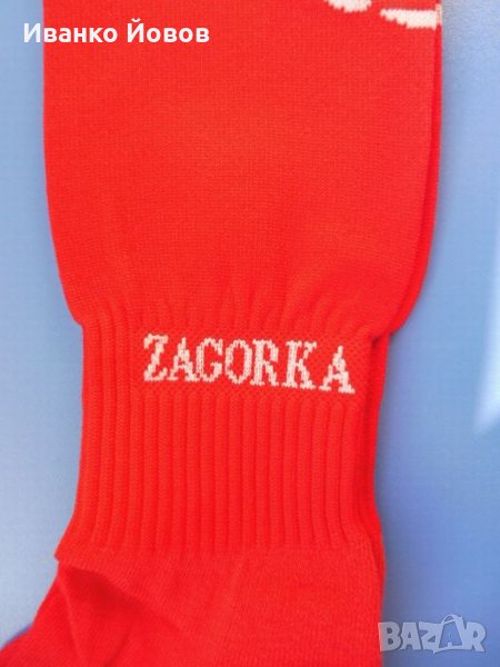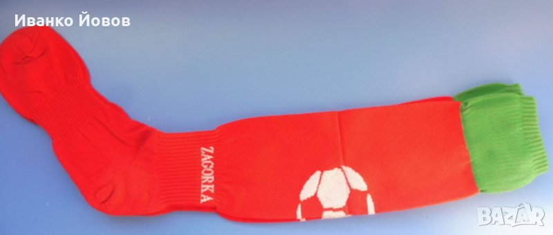Чорапи, спортни, футболни, червени със зелен кант и бял надпис Zagorka и